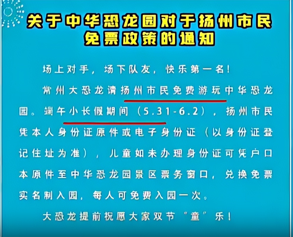 常州也是真着急啊,中华恐龙园赶紧发布公告,扬州市民可以免费畅玩。网友调侃,这是倒数第一“贿赂”倒数第二啊。