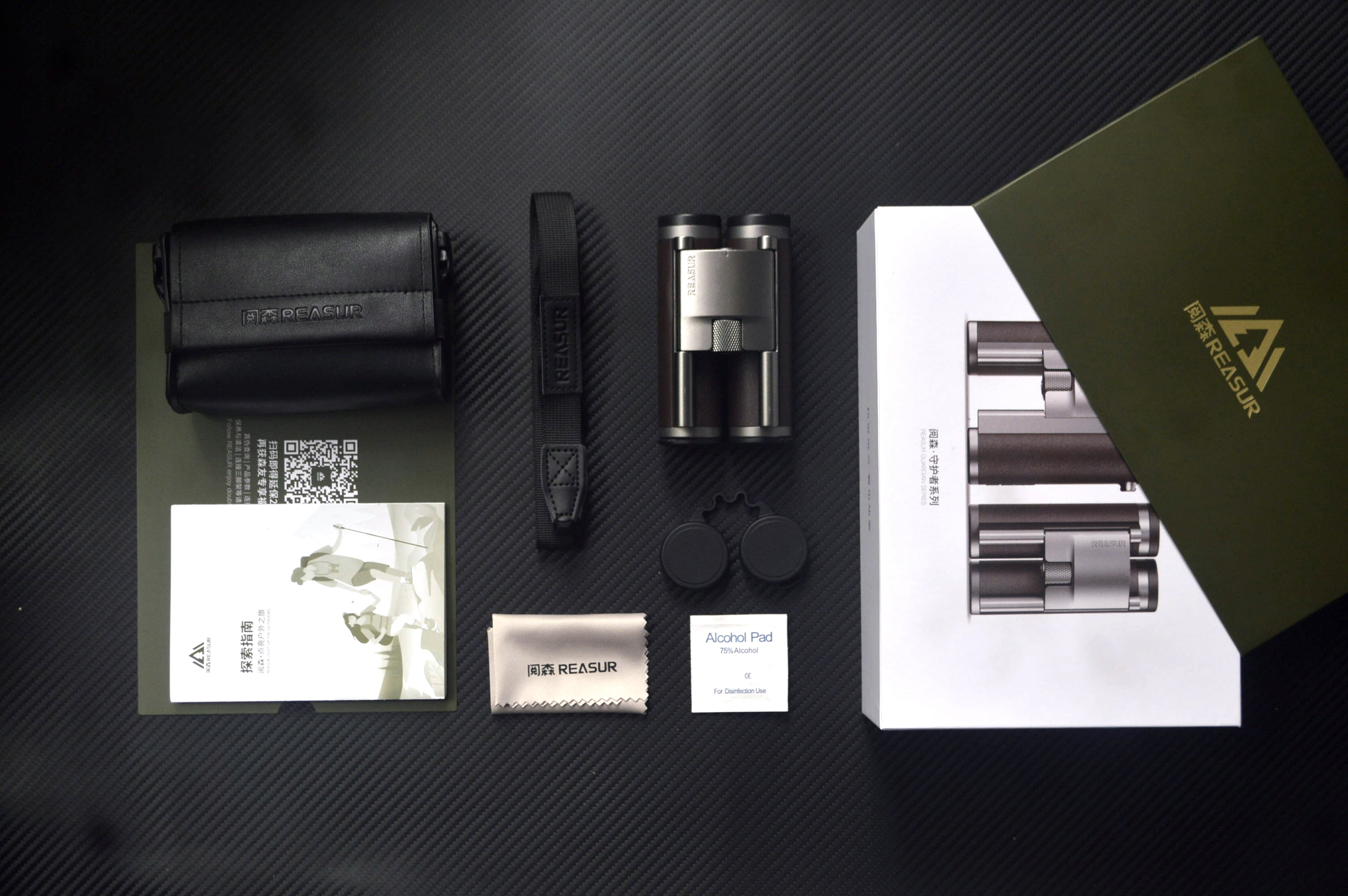 守护者(10×25)外包装很是精致,棕色的外罩与望远镜的镜筒颜色一致。打开外包装,标配很丰富有:说明书、挂绳、望远镜本体(含目镜罩、物镜盖)、收纳包、擦镜布、酒精湿巾和延保卡一张。