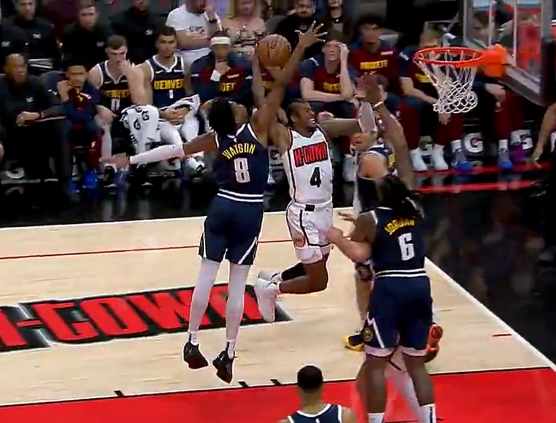 格林落地时左手撑地,疼痛难忍,躺在地上无法起身。队友海王与申京上前将他扶起。掘金主帅马龙对这一球提出挑战,认为没有犯规,但最终挑战失败。格林起身后两罚全中,紧接着在下一个回合完成2+1,继续为火箭追分。