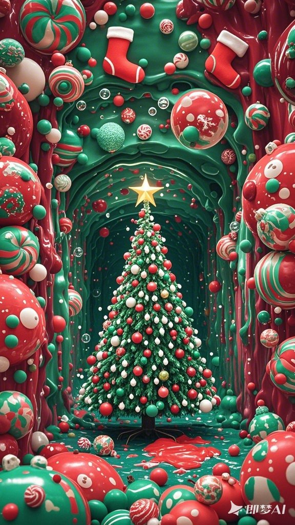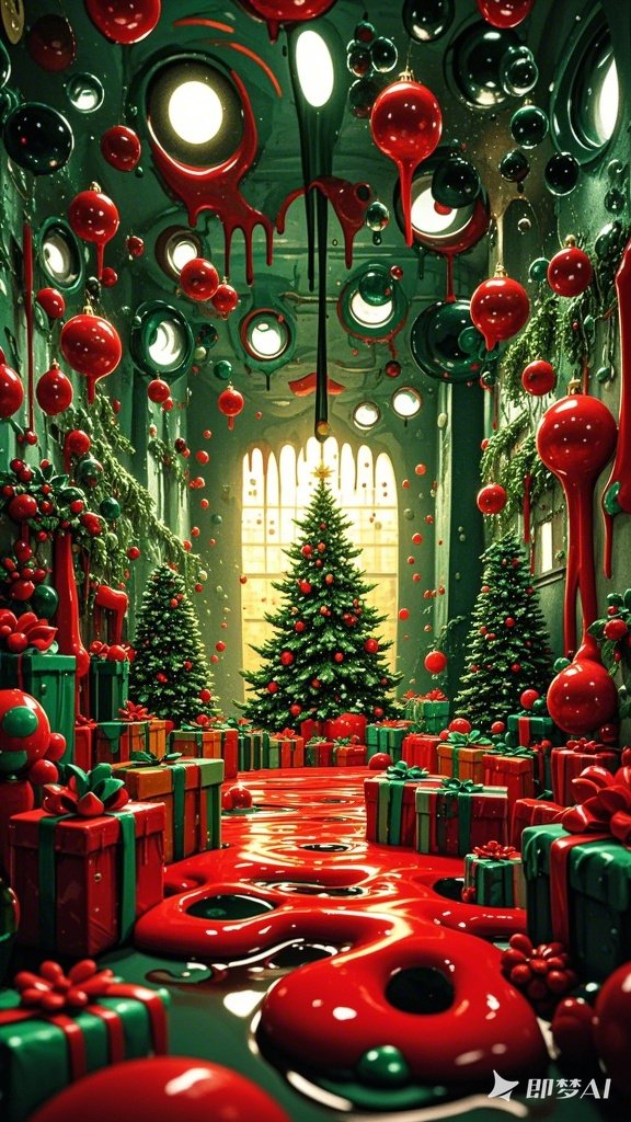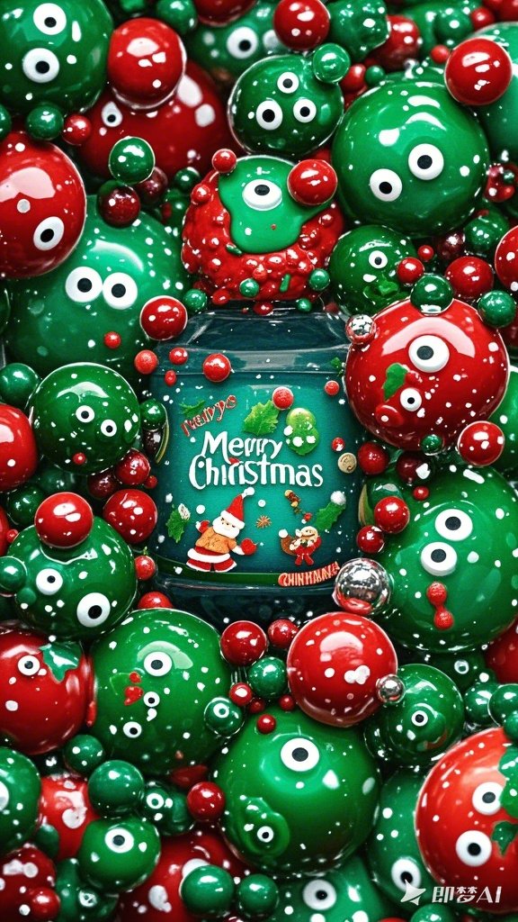 融化的圣诞节壁纸,密集恐惧症粘液恐惧症。怪诞诡异的手机壁纸,AI绘画,圣诞节壁纸分享。