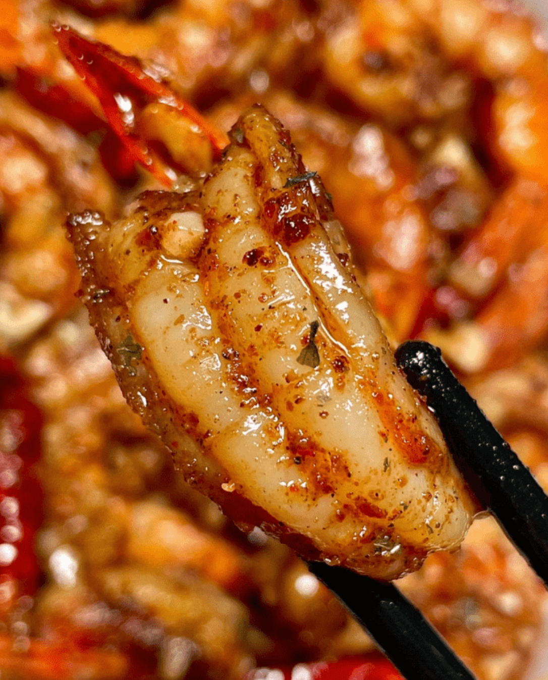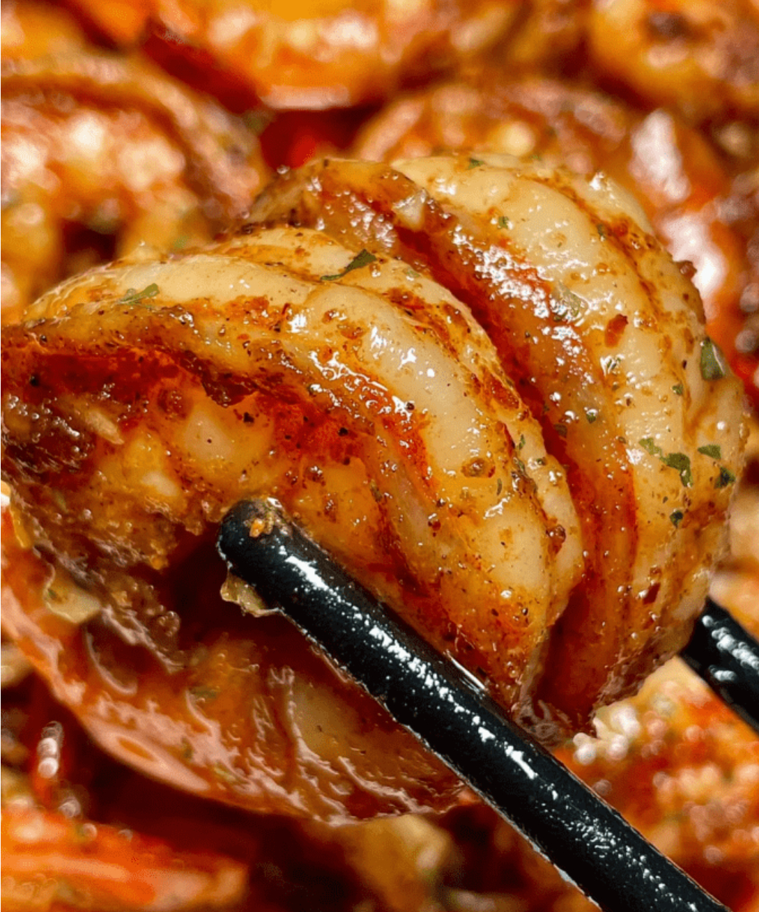冷锅放入黄油开中小火,当黄油开始冒小泡(约30秒),立即倒入一半蒜末。这时候要像守护初恋般盯着锅——蒜末变成金黄就关火!余温会继续加热,过火会发苦。转中火后将虾平铺在锅中,重点来了:别翻动!让虾背充分接触锅底,2分钟后翻面。这时虾壳会呈现诱人的焦斑,虾肉刚好卷成完美弧度,仿佛在锅里跳起了圆舞曲。