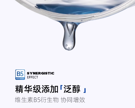 苦参根提取物 + 胀果甘草根,实验室检测对 “促炎因子” 的抑制率达到41.2%,舒缓油皮炎症、泛红效果突出;泛醇(维生素 B5 衍生物)渗透性极好,能直接深入肌底抓水,测试中,使用后即时皮肤水分含量提升 35.8%,8 小时后仍保持 **22.1%** 的增幅,长效保湿力拉满。