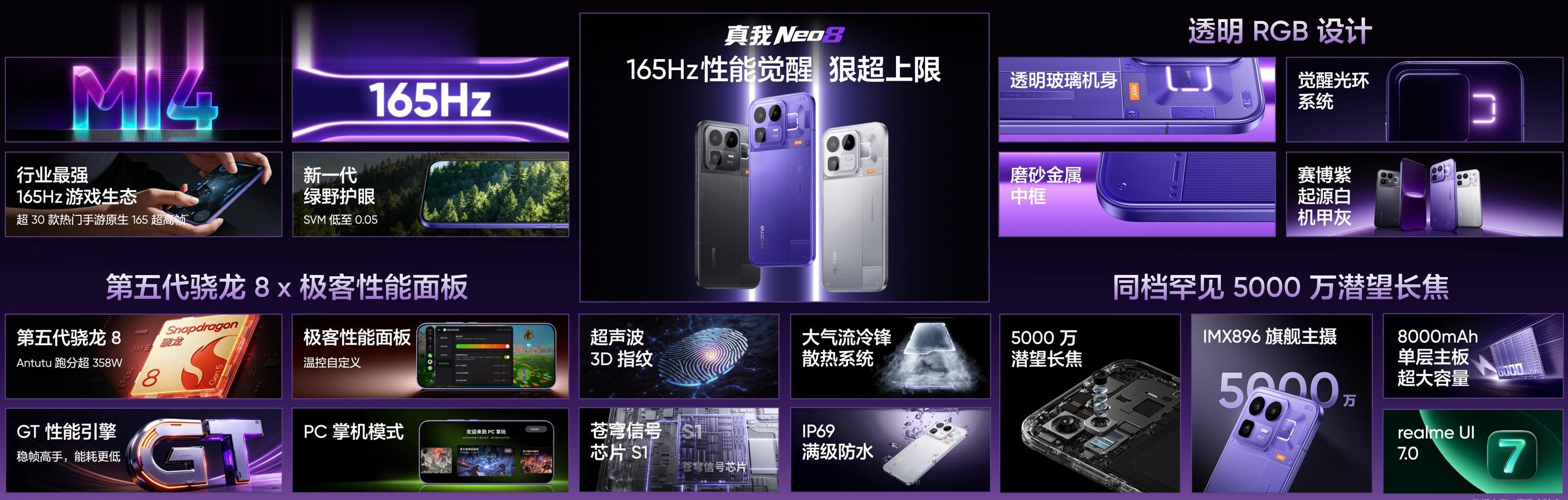 真我realme副总裁、中国区总裁徐起在发布会上提到,2025年真我手机总销量超过3亿台,Neo8是这一系列的“集大成”,在设计、屏幕、性能等方面都进行了重要升级。