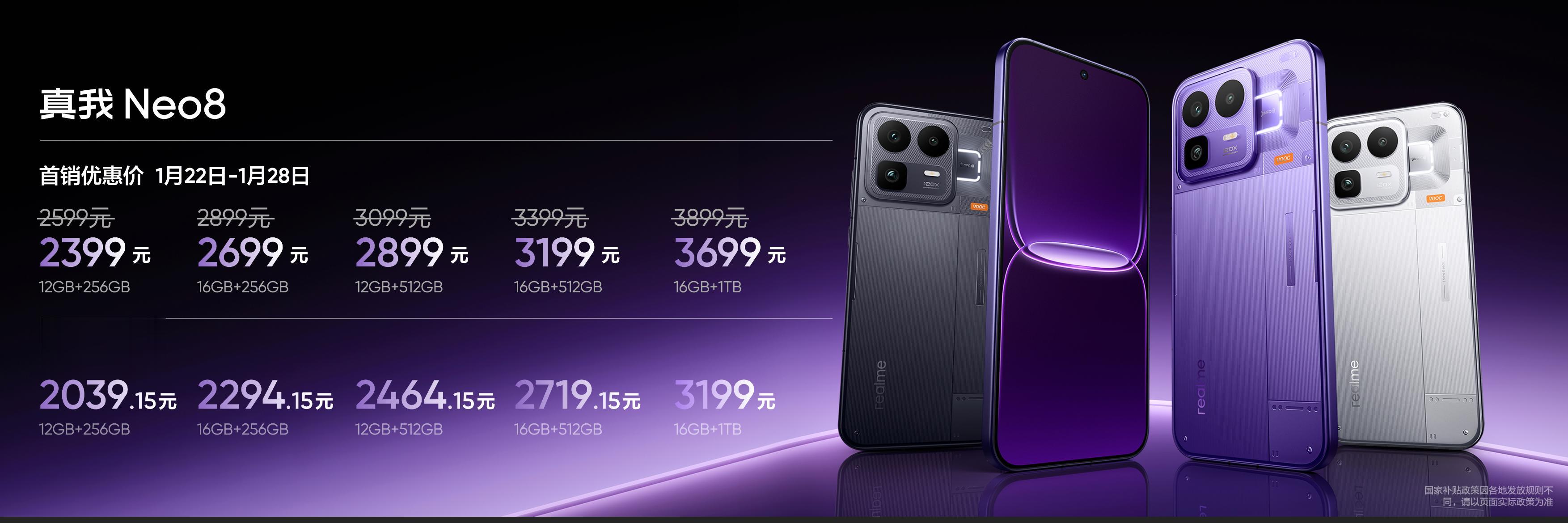 智东西1月22日晚间报道,刚刚,真我正式发布了旗舰真我Neo8系列,其全球首发了165Hz三星屏、行业首发了PC掌机模式,搭载了目前同档位唯一的潜望长焦镜头,配备了8000mAh电池。