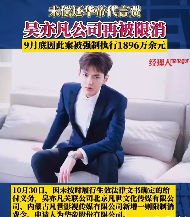以吴亦凡的表哥吴林为例,他多年来一直负责吴亦凡的经纪事务,参与了多个公司的运营。然而,法院最近发布了限消令,要求吴林支付高达1.65亿元的金额。
