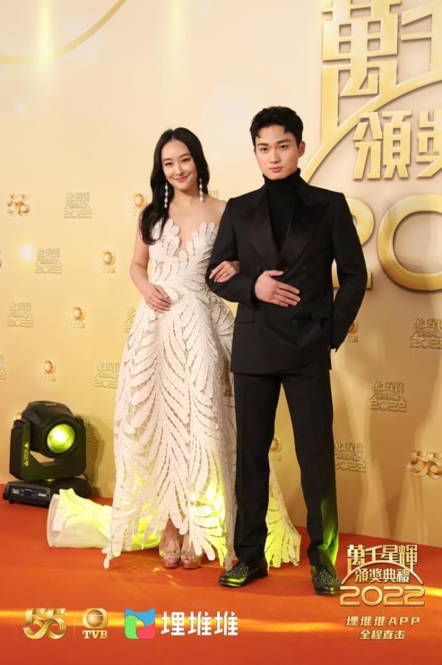 出道10年的刘佩玥,以一身白裙造型走上红毯。今年对于刘佩玥来说同样是大丰收,凭《美丽战场》提名“最佳女主角”及“最受欢迎电视女角色”以及“飞跃进步女艺员”提名。除了个人奖项提名,刘佩玥还和《美丽战场》中的“荧幕CP”林盛斌提名“最佳电视拍档”奖项,2022年对她来说绝对是大丰收年!