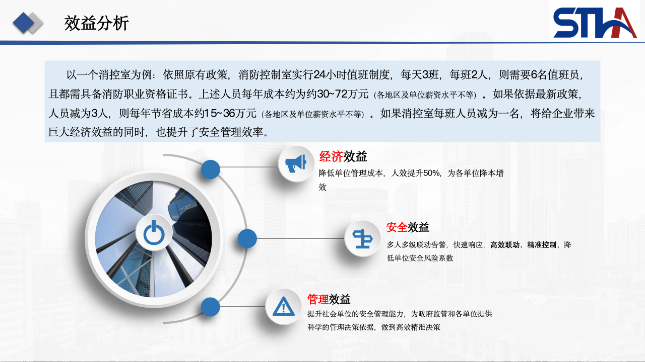 该系统的落地可为物业企业带来四重价值:经济性、合规性、安全性与稳定性。在经济性方面,系统可将原有“双人持证、三班运转”模式优化为“现场单人值班+远程中心协同”,助力企业降低约50%的人力成本。在合规性方面,系统严格遵循各地消防条例中“联网即可单人值班”的规定,帮助企业合法合规运营。在安全性方面,系统配备7×24小时远程值守中心,实现火警分级响应、人员离岗托管、多方联动处置,形成“现场+云端”双保险机制。在稳定性方面,系统采用原厂协议对接,响应速度达毫秒级,并引入第三方保险兜底,累计赔偿限额达200万元,为物业企业提供坚实的风险保障。