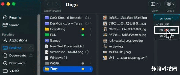 9、列视图(Column View)才是真正的 MVP,如果你还在用别的视图,可能会经常迷路,列视图能清晰显示多层文件夹结构,双击列间分隔线会自动按最长文件名调整宽度,按住 Option 拉宽度还能一次性统一所有列的宽度;