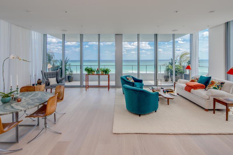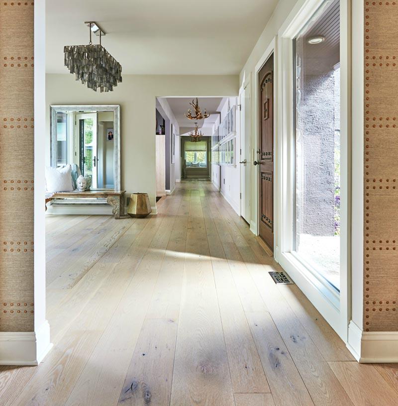 使用浅色调的宽木板木地板进行设计。