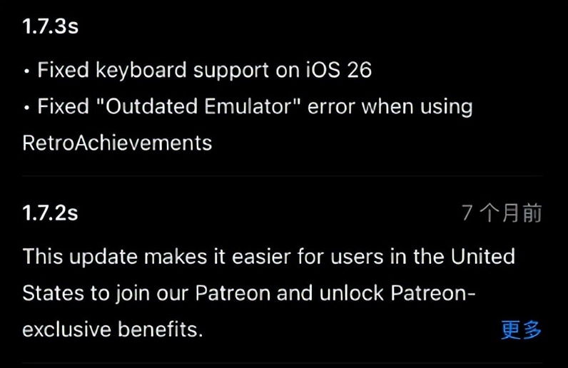 根据版本更新说明,它主要修复了 iOS 26 键盘不兼容,以及 RA 核心失灵的问题——我说最近怎么有点怪怪的。