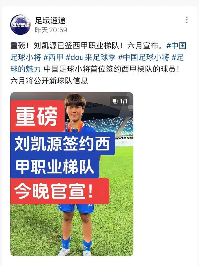 更为惊人的是15岁足球小将刘凯源的崛起。这位年轻球员甚至连U14国少集训队都没有参加过,却凭借自己在西班牙青年联赛的出色表现,成功签约西甲俱乐部梯队。网传他的身价可能高达1.5亿欧元,虽然这一数字尚未得到证实,但已足以让人惊叹。