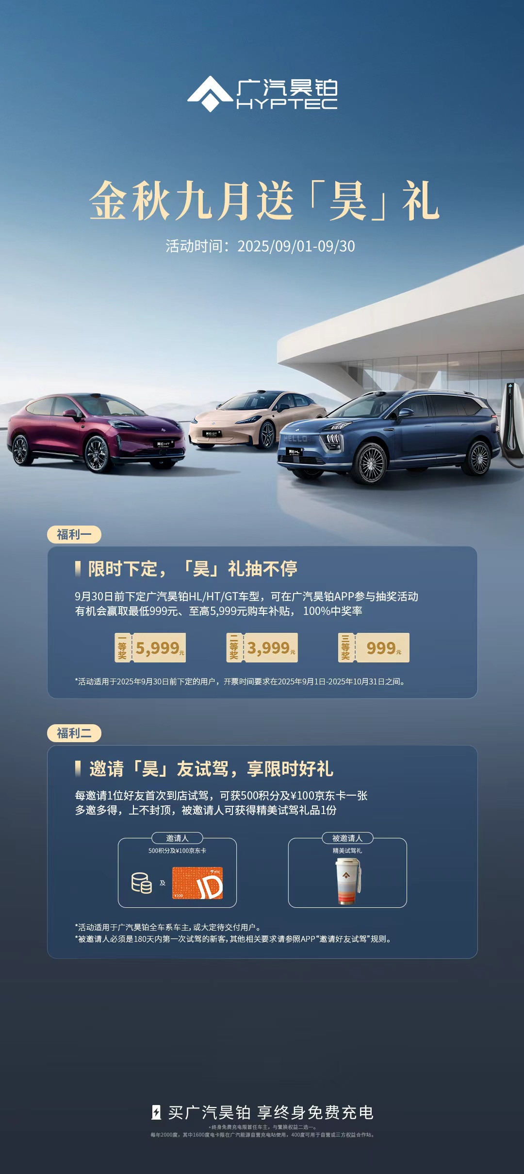 在权益方面,昊铂HT提供四项终身保障:终身免费充电、三电终身质保、终身免费保养、终身免费送桩到家。尤其是覆盖全国22000+根充电桩的终身免费充电网络,让用户在日常通勤中可随时免费补能,长期节省可观电费支出。智己LS6所提供的权益多为短期性质,缺乏持续价值。配合2年0息金融政策与限时购车补贴抽奖(999-5999元),昊铂HT进一步降低用户的购车与用车门槛。