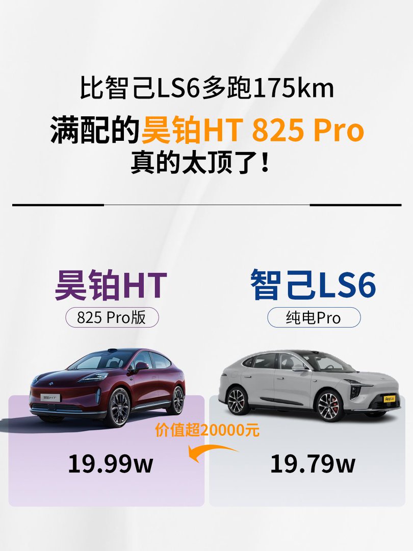 在20万级纯电SUV市场中,昊铂HT 825 Pro与智己LS6常被消费者纳入对比清单。表面上看,昊铂HT 825 Pro的售价比智己LS6高出2000元,但若深入分析其配置与权益,便会发现前者所带来的价值提升远超这微小的价差,实际价值优势可达20000元以上。