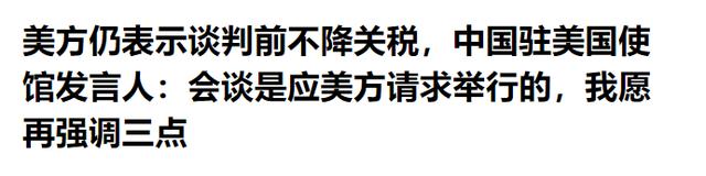 极目新闻2025-05-08 12:02——美方仍表示谈判前不降关税,中国驻美国使馆发言人:会谈是应美方请求举行的,我愿再强调三点