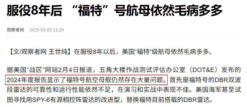 反之,别看美国更早用上了电磁弹射,但美国的福特级航母从2017年到现在服役8年了。