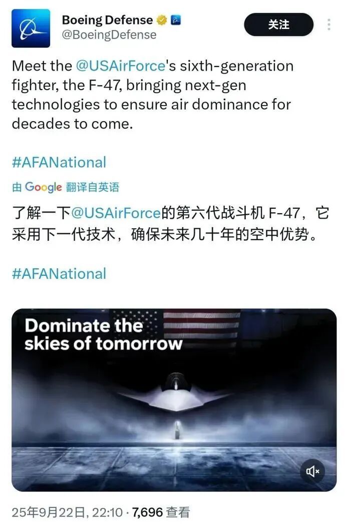 造F-47的波音表示,“统治未来几十年的天空”,口气不小。