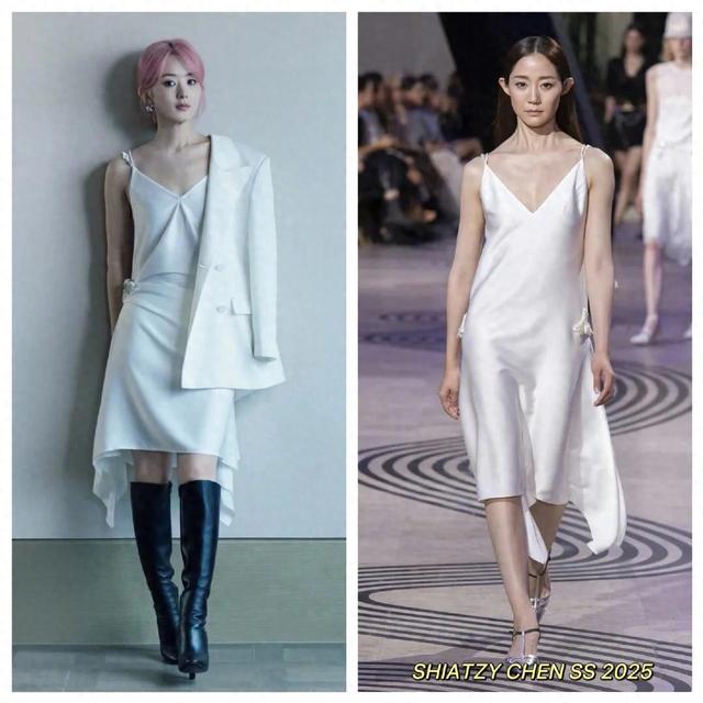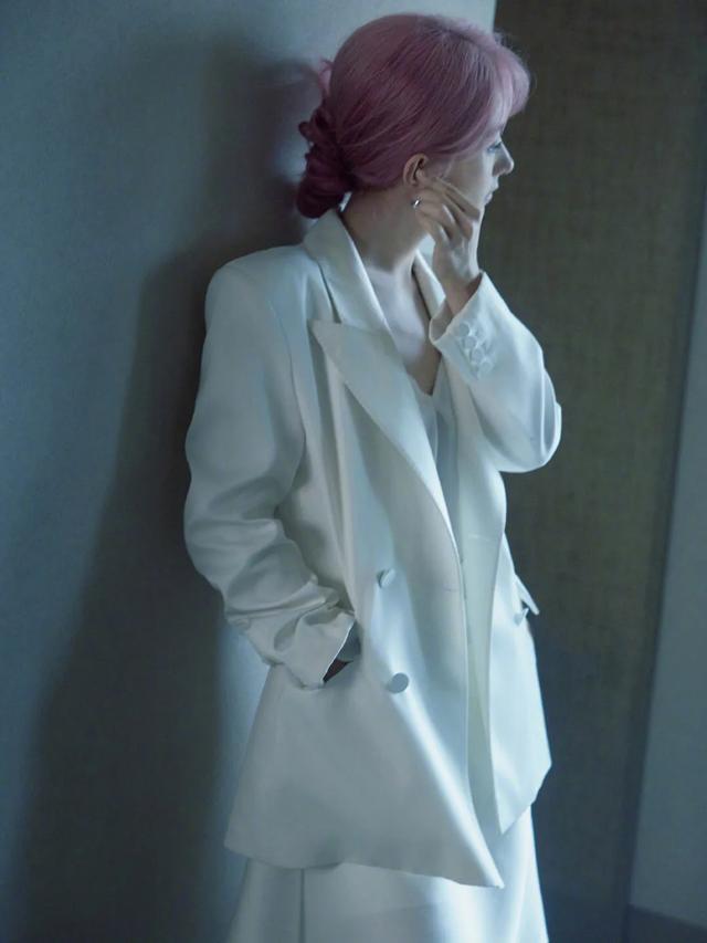 赵丽颖 今日品牌直播造型,身穿SHIATZY CHEN 白色连衣裙出镜,搭配眼前一亮的粉发,利落剪裁配上中式细节元素,清