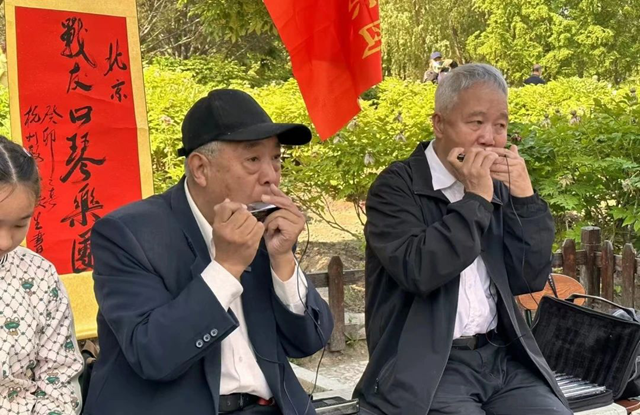 手风琴演奏家李楚然、男高音歌唱家魏广德都曾与他们即兴合奏、演唱。2024年5月,3位法国口琴学会成员专程来访,“花甲组合”演绎中国名曲《牧民新歌》,如笛声般动听的长调,引得法国友人连连赞叹;双方共同奏响世界经典《孤独的牧羊人》,默契配合与独特韵味更是让人印象深刻。不同艺术门类、不同国界的音乐碰撞交融,生动诠释了“艺术无界,文化共融”。