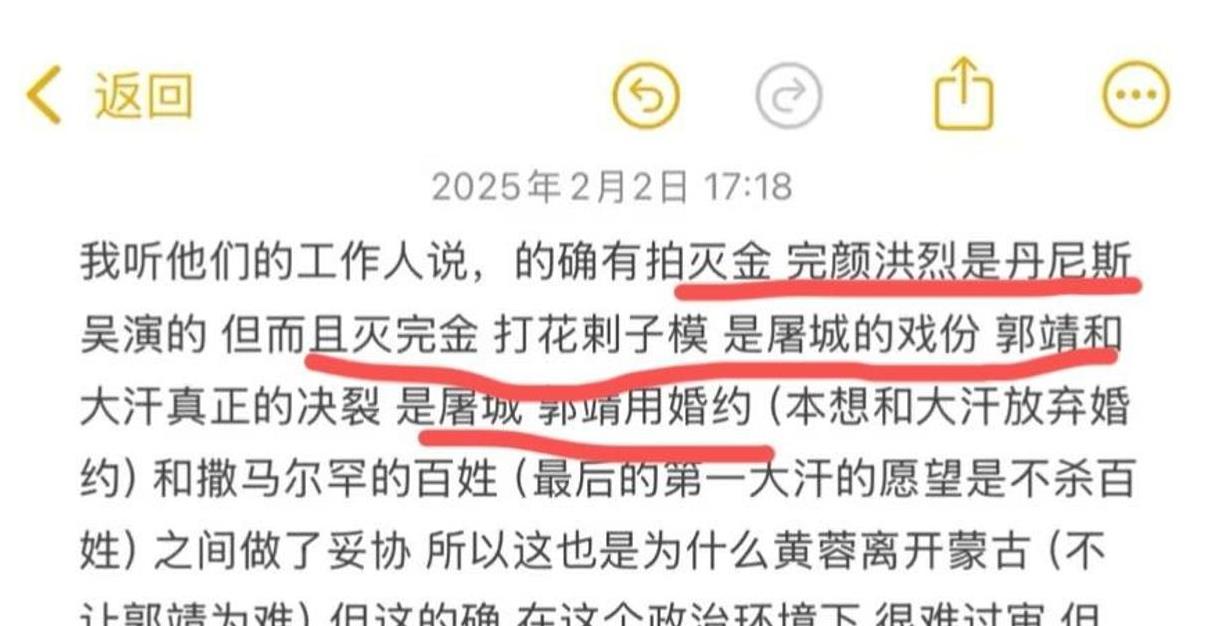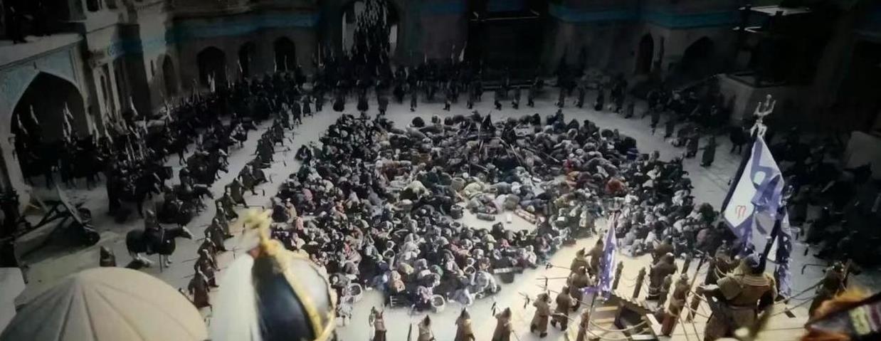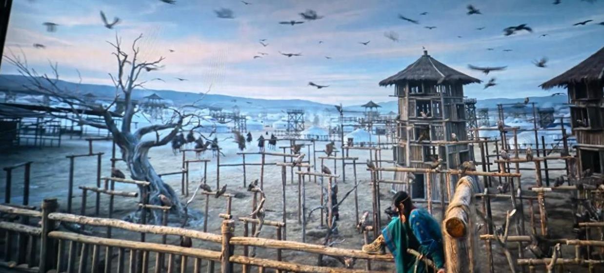 郭靖决定为百姓和国家挺身而出,不过,大汗竟然决定攻打T城,这简直太残忍了。郭靖对此非常生气,心里开始想着要为了百姓和国家做点什么。在这段西征的故事里,这是郭靖心态发生巨大变化的重要时刻。可惜的是,这么重要的情节在正片里被剪掉了,只剩下一个小片段,画面里大汗看起来威风凛凛,但天下不知有多少白骨堆砌而成。