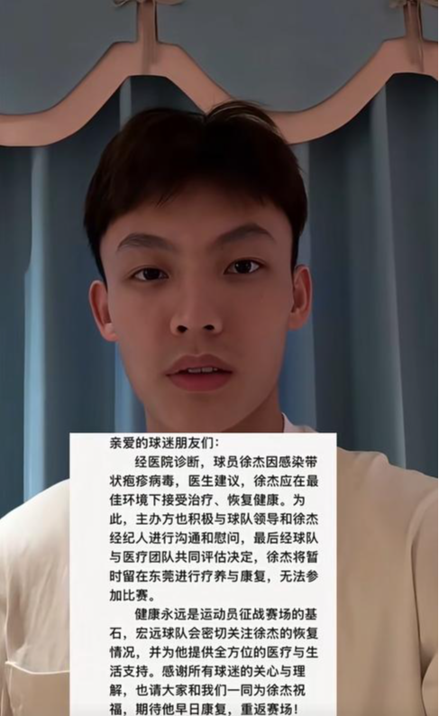 徐杰是突发感染带状疱疹病毒,昨天也亲自出镜,拍摄视频向球迷表示歉意,但是依然没能够平复球迷的躁动。