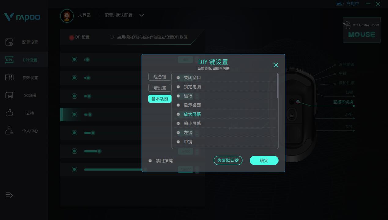 底盘上除了鼠标开关外,还有一颗红色的DIY键,它出厂时默认是DPI切换,此外它可以在驱动中对其自定义设置,设成更为贴合用户使用的功能,如锁定电脑、回报率切换、宏编程等,自由度更高。
