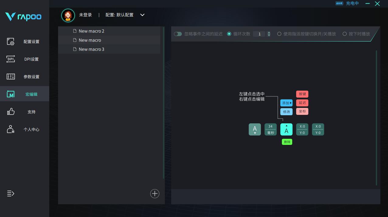 在驱动中我们可以对以上功能进行调节,而且还有着移动同步、直线修正、波纹修正、按键防抖延迟等丰富的细节调节,加上驱动中的宏编程设置功能,它可以对鼠标动作和键盘动作进行录制,可以智能的代替一些重复性的机械操作。驱动利用跟设置好的话功能非常强大。