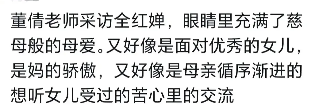 为啥会这样呢?咱们的董倩大姐可有两下子。她采访的时候,就像个温柔的妈妈,问的问题特别体贴,让全红婵觉得特别舒服。你看,全红婵在她面前,把所有的疲惫都放下了,说起话来从容不迫,把心里话都掏出来了。