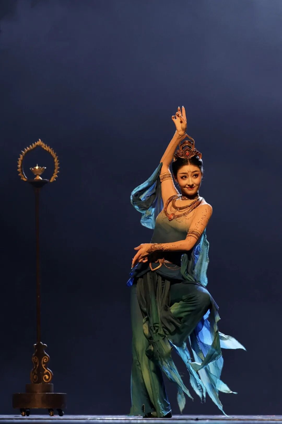 古典舞《坠入龟兹》以舞步重启千年记忆,带领观众重返丝绸之路上那个石窟艺术与乐舞交融的龟兹古国。作品将历史叙事融入舞者身韵,以古典舞语重构壁画中的飞天姿态与供养人形象,在刚柔流转间再现了那段灿烂多元的文化交汇史。