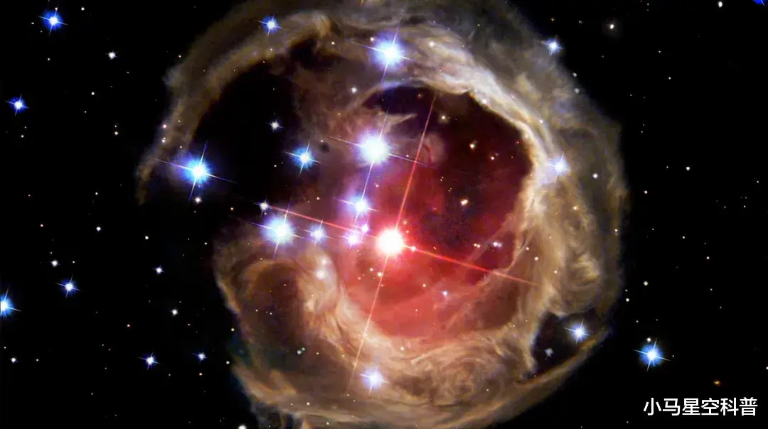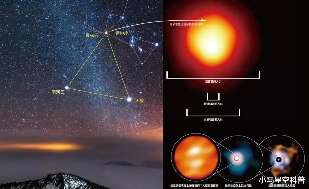 参宿四是一颗位于猎户座的红超巨星,距离地球约640光年。作为恒星生命周期中的一个阶段,红超巨星是恒星演化过程中的一个短暂但重要的时期。在这个阶段,恒星的核心已经耗尽氢元素,开始进行氦聚变,同时外层物质密度较低,体积膨胀至巨大。参宿四正是处于这样的生命最后阶段。