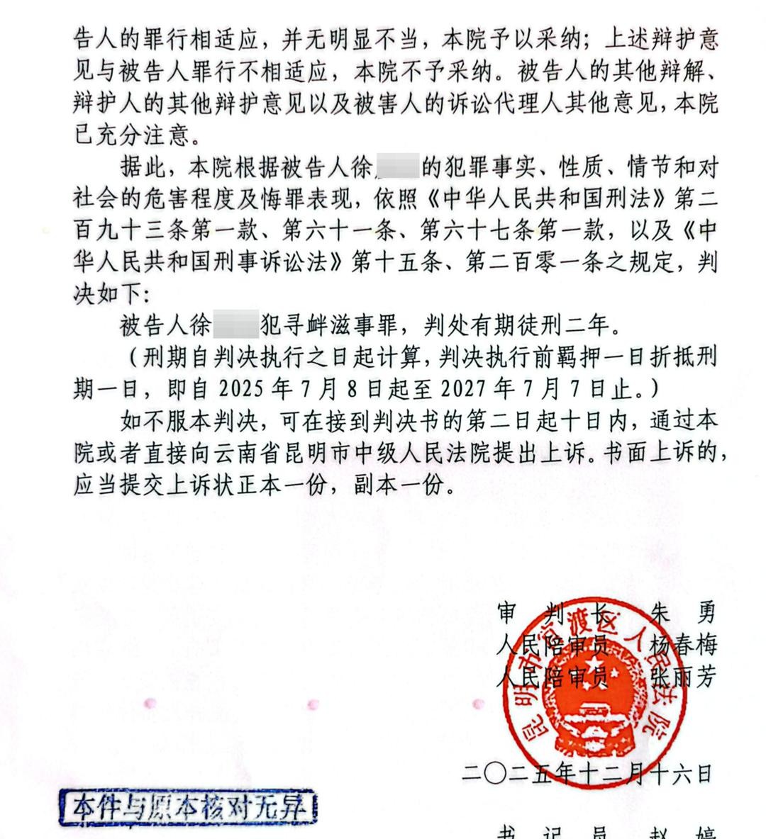 2025年7月6日,昆明市官渡区发生一起醉酒伤人事件。一名39岁男子因劝酒纠纷抄起板凳挥向同桌老乡,意外砸中路过的8岁男孩头部,导致其颅骨严重受损。时隔半年,法院一审判决肇事者有期徒刑二年,其妻子表示接受结果不上诉,但称是意外引发讨论。