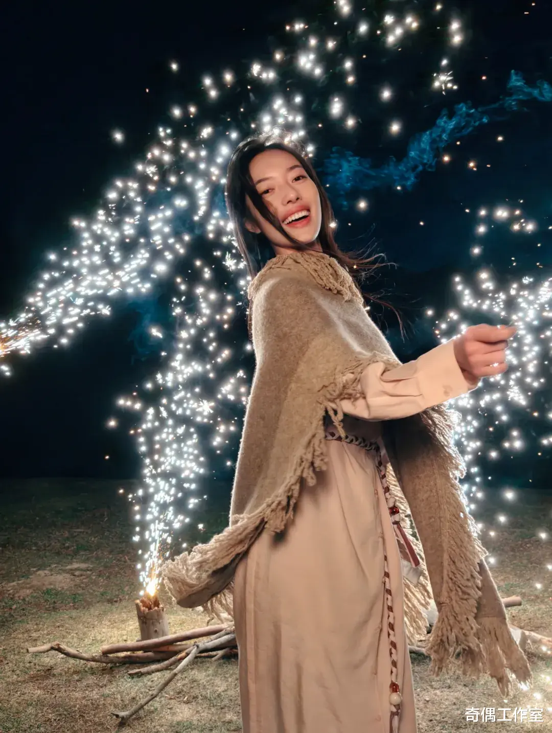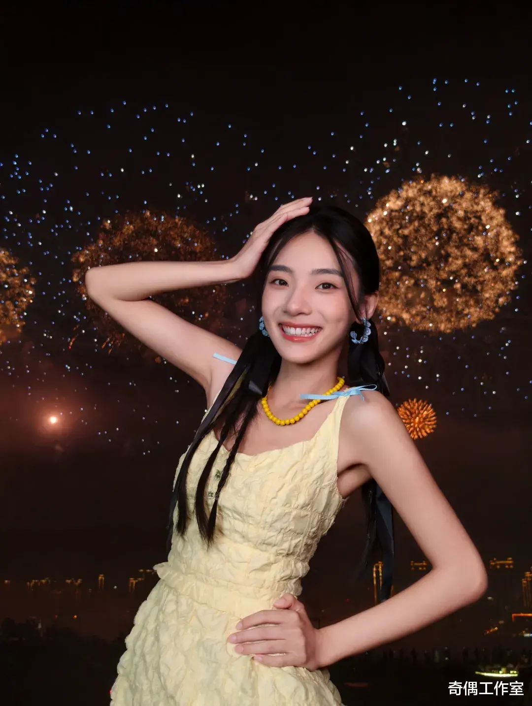 烟花下拍照也看~有烟花,也有漂亮的人。