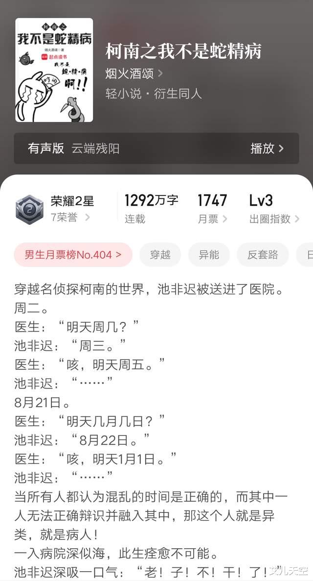 12、《柯南之我不是蛇精病》1292万字完本完结时间:10月6日