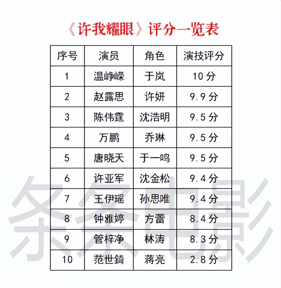 谁能想到?一部没宣发、没预热的空降都市剧,开播热度直接飙到 32638,刷新鹅厂都市剧纪录!《许我耀眼》不仅剧情 “硬”,演员演技更是 “卷” 到飞起 —— 最新演技评分新鲜出炉,有人拿满分封神,有人却垫底被吐槽,这差距也太刺激了吧!