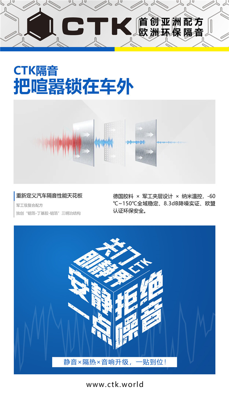 配置清单:品牌:欧洲环保隔音CTK四轮翼子板:欧标止震板+弹力棉+低频王隔音棉前门板:欧标止震板