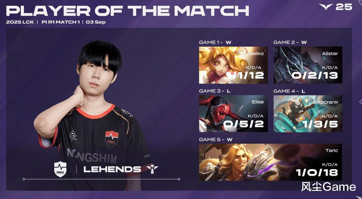 LCK常规赛结束之后,入围赛已经正式打响了,上一个比赛日,传奇组的NS,和崛起组的BRO展开对决,两队鏖战五局,最终NS以3:2比分击败BRO,晋级胜者组第二轮,下一场如果赢下DK或者BFX的话,NS就能晋级季后赛,BRO输了之后,跌入败者组,再输一场BO5就无缘季后赛了。