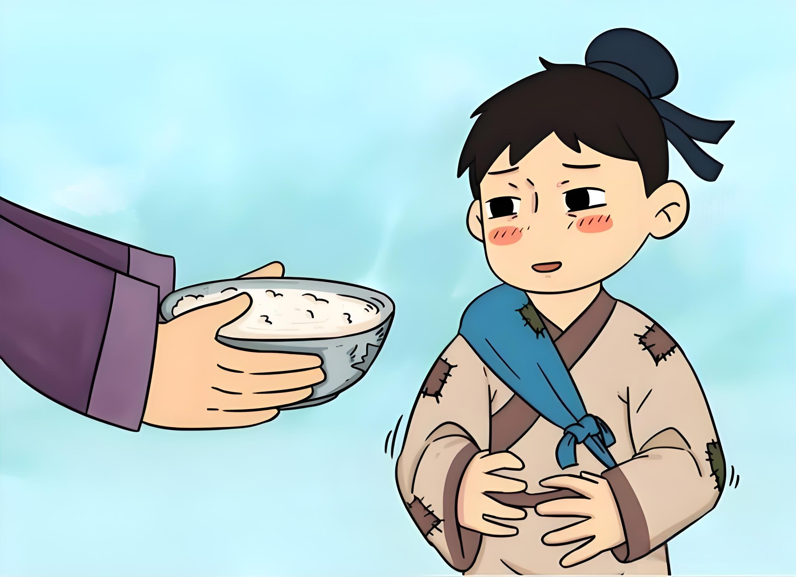张三接过碗,狼吞虎咽。热粥下肚,他感到一股暖流蔓延全身。