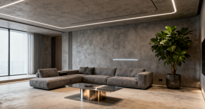 走进2025年别墅家装展,最引人注目的不是璀璨的水晶吊灯,也不是奢华的大理石地面,而是一种被称为“未来考古风”的全新设计理念。这种风格巧妙地将未来感与原始感、精致与粗粝相融合,创造出一种仿佛穿越时空的居住体验。