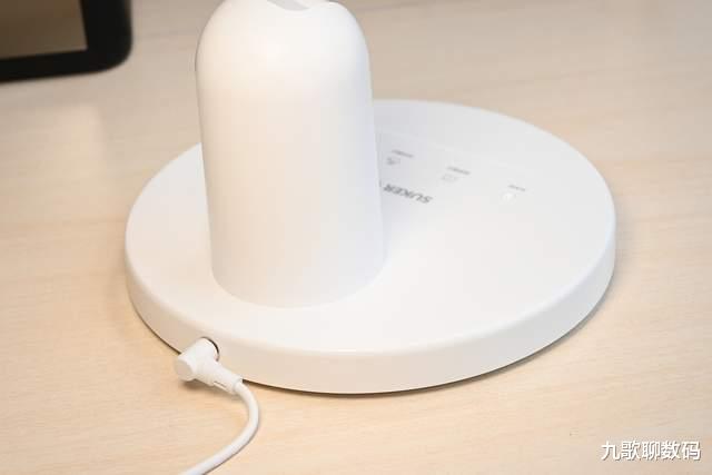 台灯的底座做得很厚实,搭配底部的弧形防滑脚垫,在比较光滑的桌面上也能稳固如山。即使意外碰到,也不会轻意跌倒。