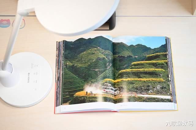 台灯的显色效果也很好,书本上的配图色彩色彩,还原真实。任何亮度上都没有频闪的现象。其DT多维漫射2.0系统模拟出来的自然光在视觉上很舒服。相较之前所用的老台灯,书客SKY光源更为明亮和均匀,试了下书桌边角各地方亮度都是差不多的。而灯源的发光面也足够大,整个桌面都能够被照亮。无论是我用来阅读、工作,还是孩子做题,温功都是很舒适的。