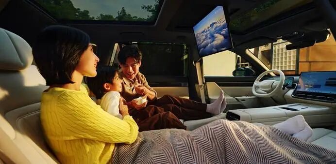 eπ008五座版则瞄准15万级大五座SUV市场,与比亚迪唐、零跑C10等车型形成竞争。其核心竞争力在于对“家”的场景化深度理解——不是简单追求七座,而是将五座空间做到极致。超5米车身与灵活空间组合解决了家庭用户“空间焦虑”;二排电动魔毯座椅与多功能休憩模式则直击家庭出行的舒适痛点。在增程与纯电双技术路径支持下,eπ008五座版既满足了对续航有要求的用户,也照顾了偏好纯电驾驶的消费者,展现出“国家队”在新能源技术储备上的厚度。