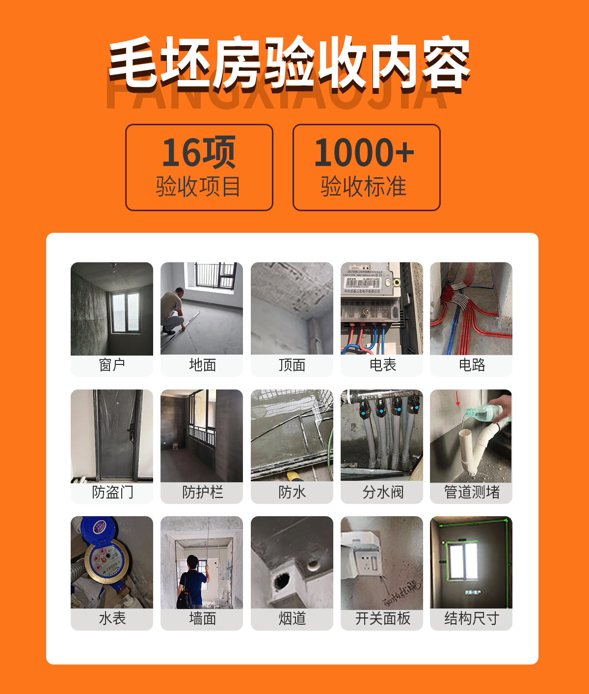 毛坯房作为装修的 “底子”,基础工程质量直接影响后续居住体验。房小家毛坯房验房涵盖 16 大项、1000 + 小项检测内容,重点聚焦: