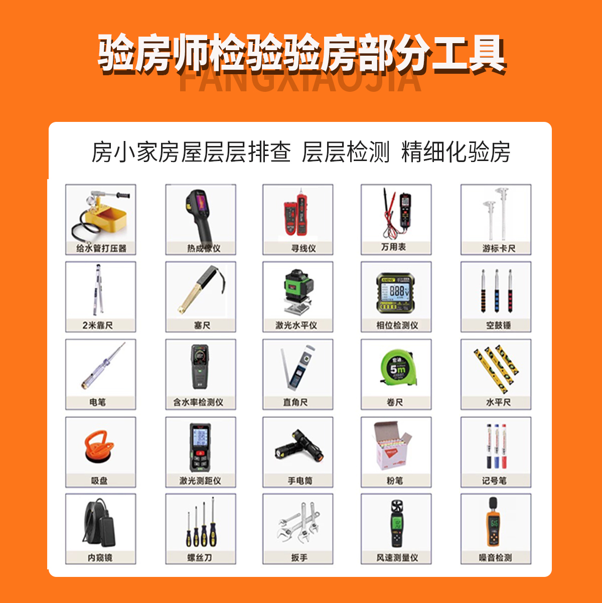 工欲善其事,必先利其器”,房小家为每位验房师配备全套专业检测设备,让隐患无所遁形: