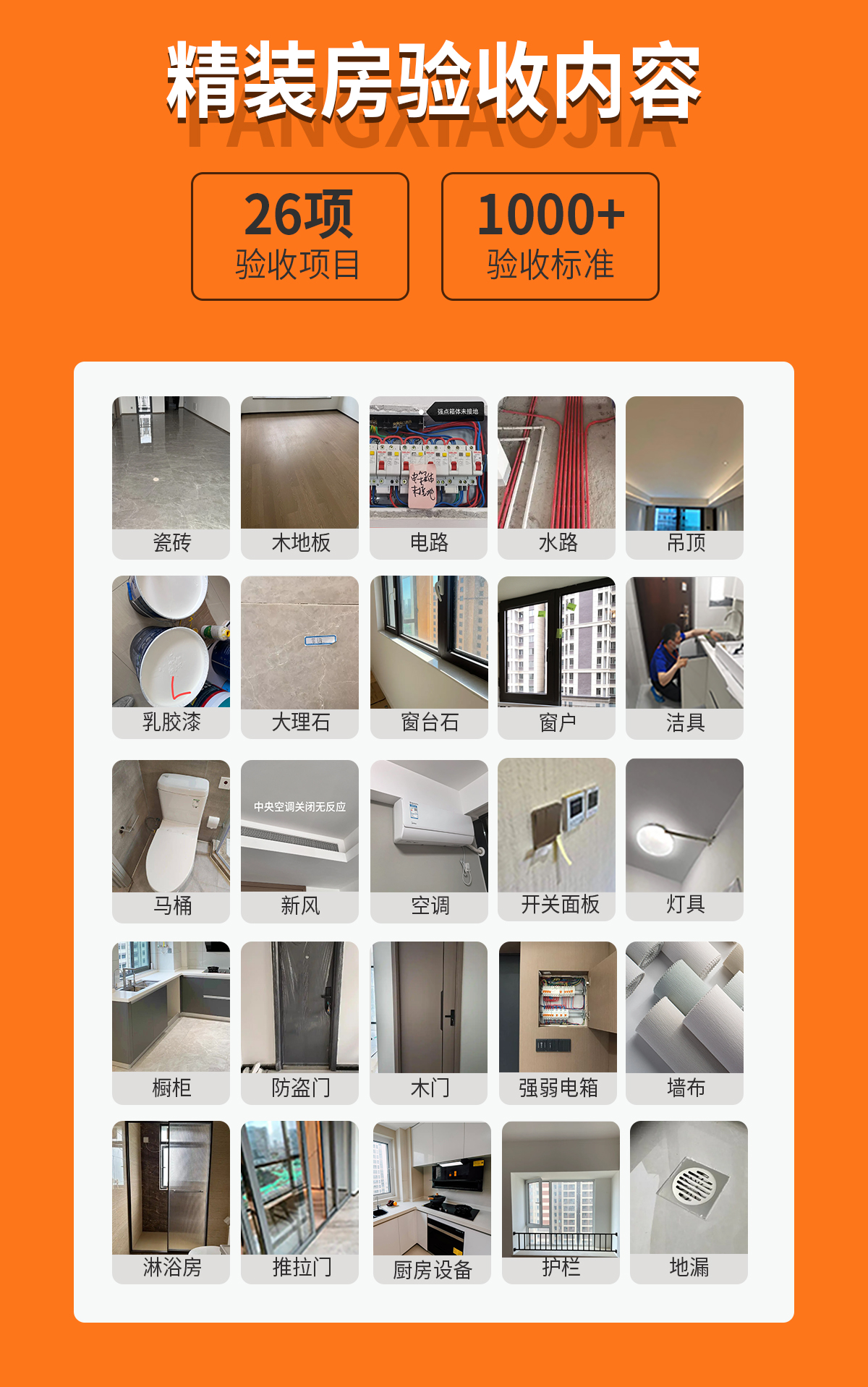 · 其他细节:烟道通畅性、护栏高度与牢固度、管道测堵、强弱电箱配置等。