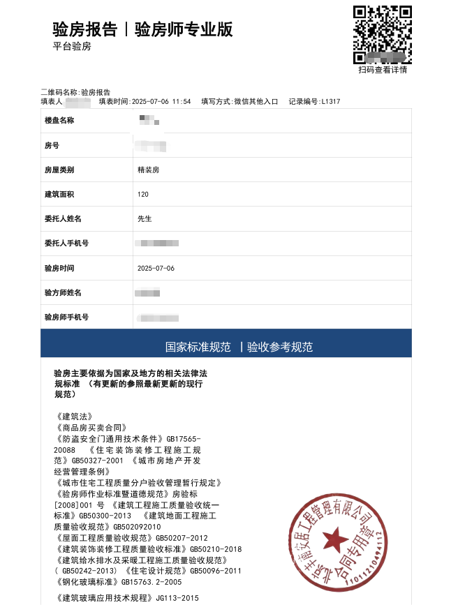 房小家验房流程与国家级建筑验收标准同源,严格遵循《建筑工程施工质量验收统一标准》《住宅装饰装修工程施工规范》等 10 余项国家及行业核心规范。