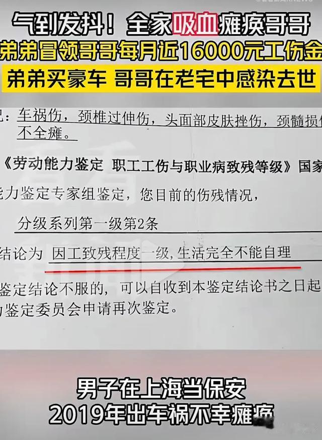 弟弟冒领瘫痪哥哥58万工伤金,并且还买了豪车,男子没有工作,而且他老婆也没有工作,是个残疾人,没想到就靠着哥哥的工伤金过日子。