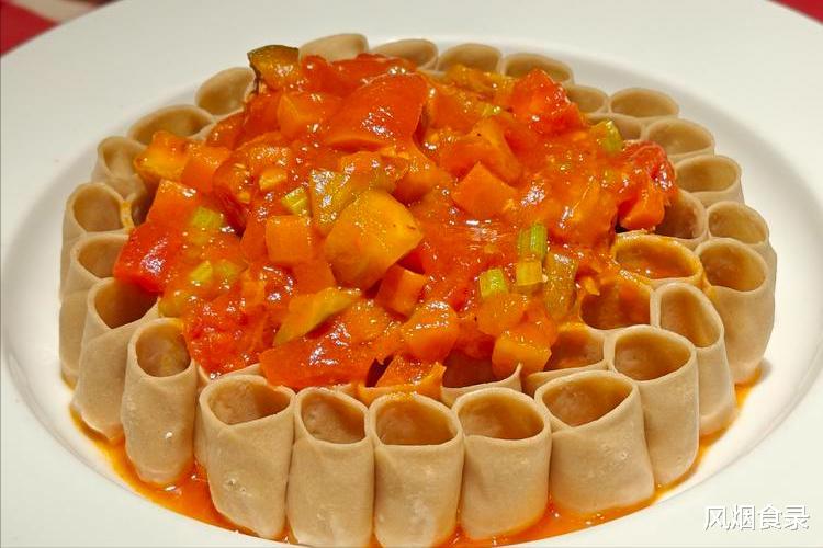 浇头更绝:西红柿熬成浓稠酱汁,混着土豆丁、茄丁、青红椒,酸甜里带着点鲜辣,