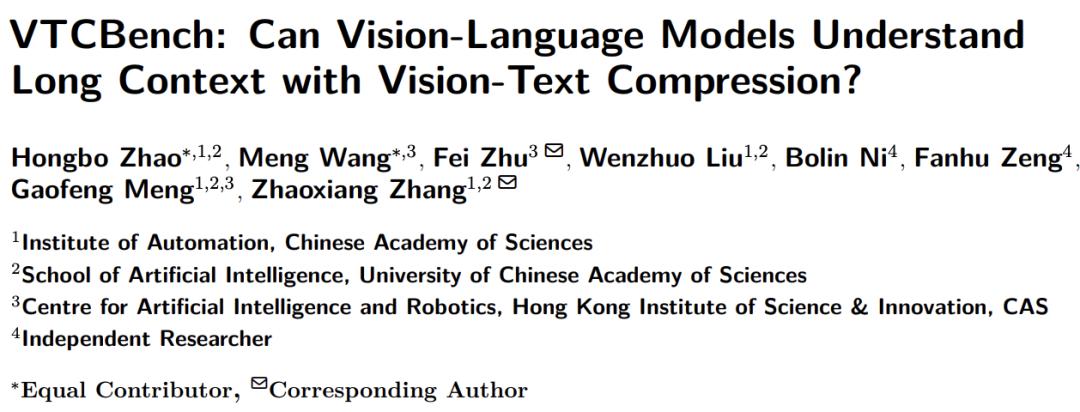 为了解答这一疑问,来自中科院自动化所、中国科学院香港创新研究院等机构的研究团队推出了首个专门针对视觉 - 文本压缩范式的基准测试 ——VTCBench。
