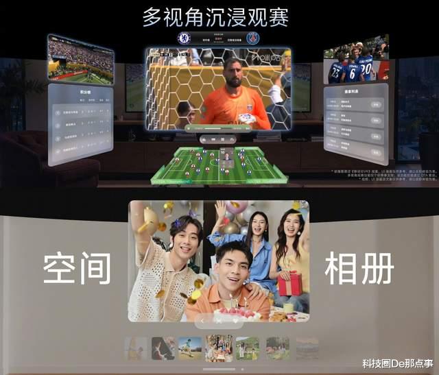 场景生态方面,vivo Vision探索版成为能无缝融入用户数字生活的超级入口,vivo把生态建设放到了核心位置,从影音、游戏到办公,为用户带来了新奇有趣的丰富内容。例如,移动巨幕影院让120英尺超豪华巨幕立刻被“搬”到面前,置身影院C位;支持上下左右180°的视野与空间音频技术,为用户打造了“沉浸穹幕视频”体验。与咪咕视频的合作,更让用户能够自由切换多视角观赛,实时查看比赛数据。对于游戏爱好者,设备独家推出的《桌鼓达人》和《小V的旅行》两款MR内容,将虚拟元素与现实环境无缝结合,带来前所未有的互动体验。同时,兼容主流VR游戏,并支持无线连接PC VR游戏库,用户可通过双目8K臻彩屏和毫米级手柄追踪,享受超大屏的高清游戏画面。