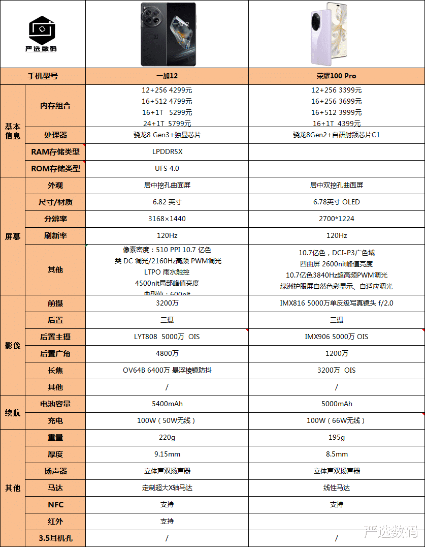 一加12肯定要比荣耀100 Pro更好,这点毋庸置疑,毕竟两者相同存储版本有近千元的差价,不过只要清楚差距在哪里,选择上就很简单了!