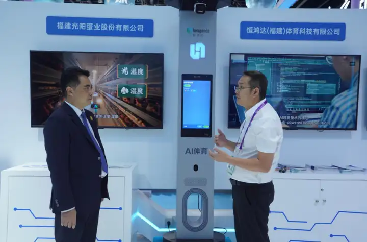 大家可以在现场与恒鸿达(福建)体育科技有限公司所设展品“AI数字体育一体机”互动体验,也可以实地感受福建光阳蛋业股份有限公司自主研发的“木鸡郎”蛋禽养殖机器人的“智慧”之处,以及漳州科虹电子有限公司带来的智能大米包装生产线,如何实现真正意义上的“解放双手”……众多充满福建特色与科技感的展品,吸引了众多客商和潜在合作伙伴关注,集中呈现了福建高质量对接RCEP的创新成果与福建在数字领域蓬勃发展的万千气象。